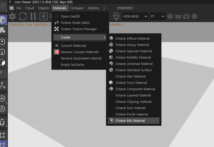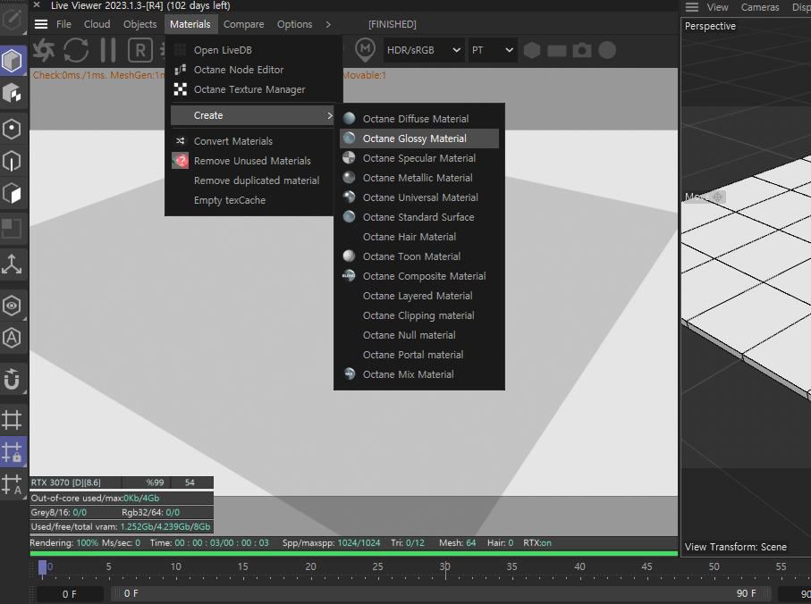 Octane Glossy Material을 두개 생성하시고 색을 다르게 설정합니다.